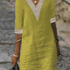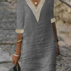 Arianne - Elegantes Kleid aus gehäkelter Baumwolle mit V-Ausschnitt