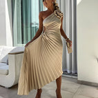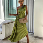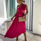 Callie - Elegantes plissiertes Schulterkleid mit großer Rose für Damen