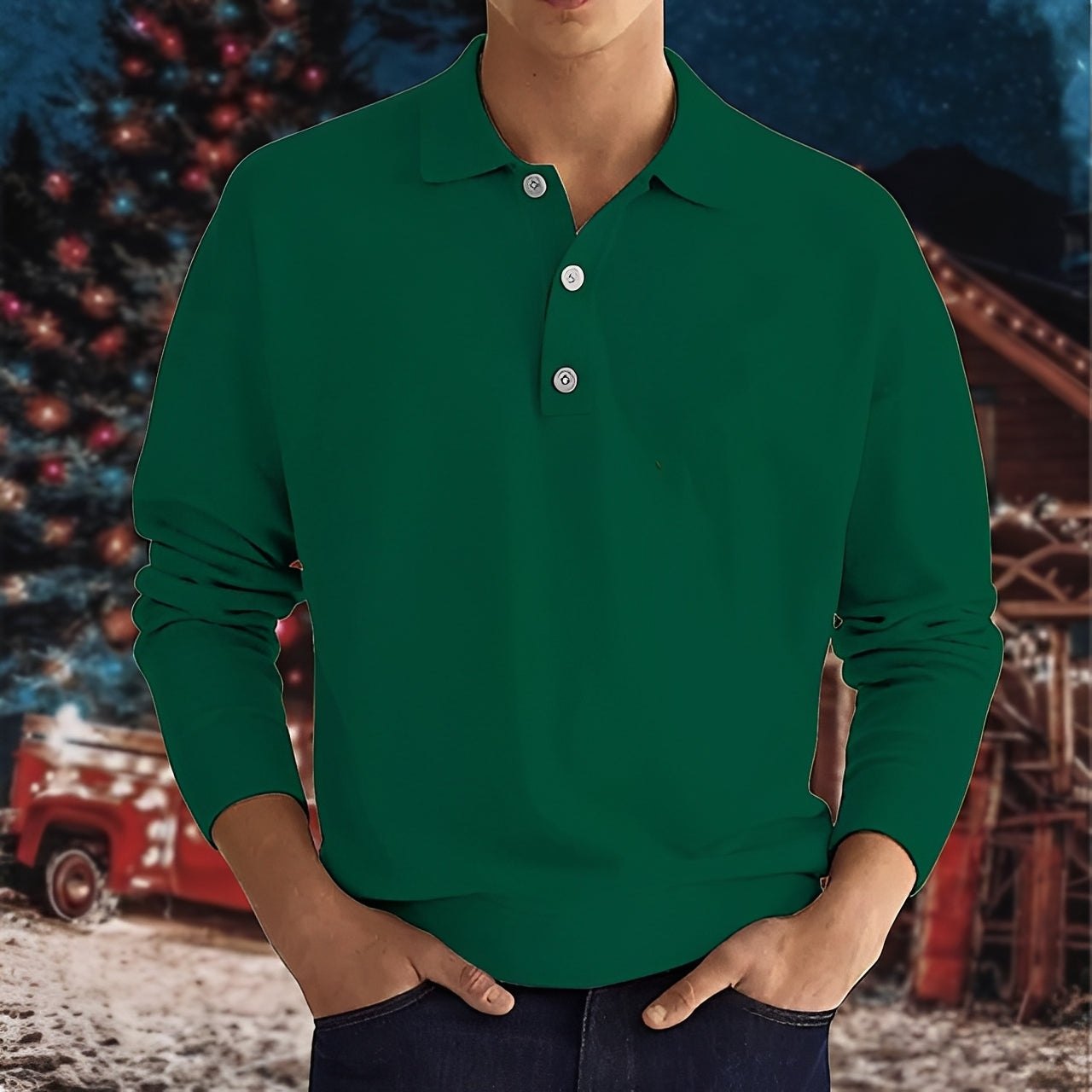 Cédrick - Warmer Winter-Poloshirt mit langen Ärmeln für Herren