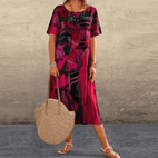 Verwandelt jeden Moment in einen unvergesslichen Auftritt. Das Kleid Elizabeth vereint weibliche Feinheit mit einem umhüllenden Tragekomfort. Mit zarten Blumenmustern und einer fließenden Silhouette betont dieses Stück die natürliche Schönheit des Körpers und schenkt Ihnen einen eleganten und bequemen Look, passend für Tag und Abend.