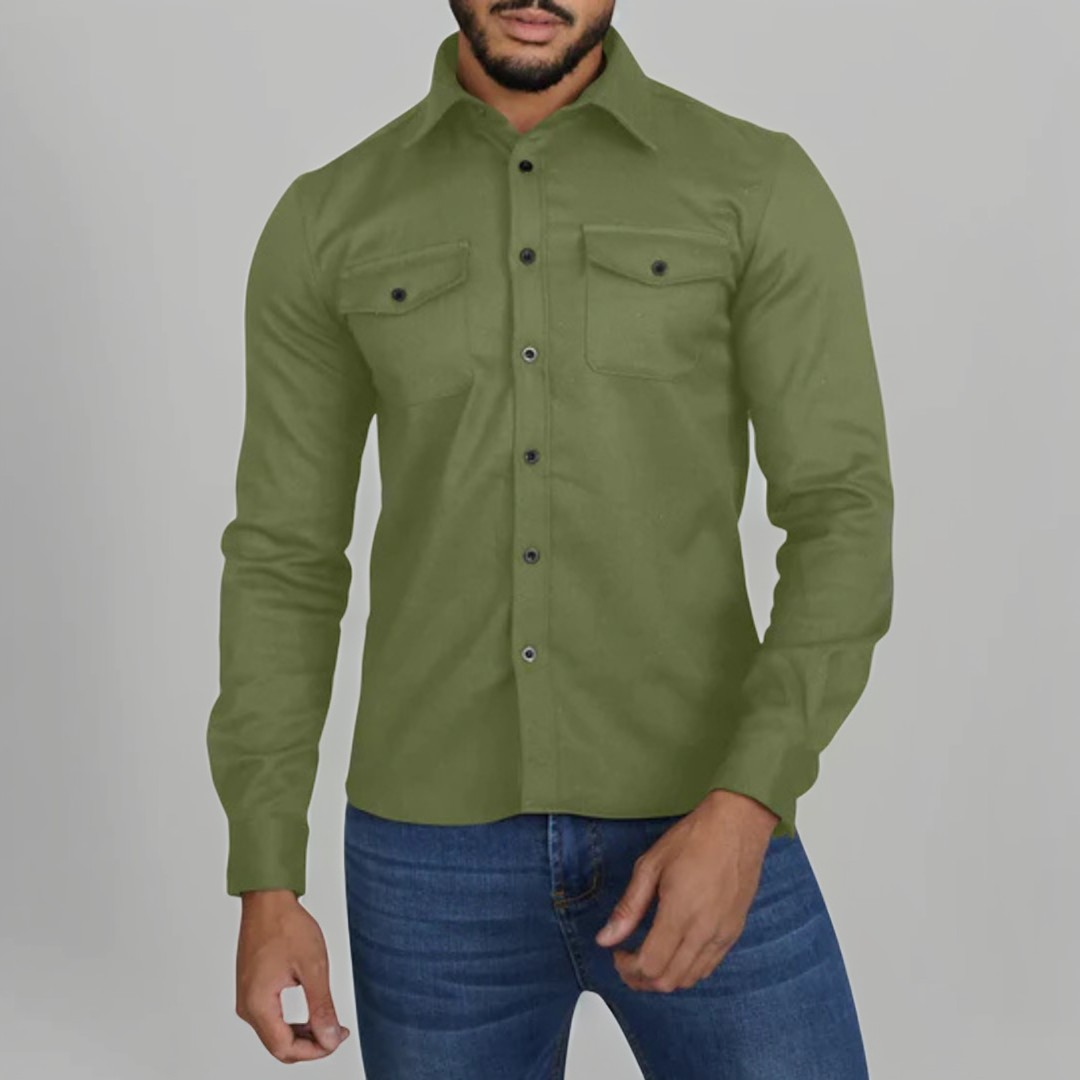 Ein legeres Hemd mit langen Ärmeln, das Komfort, Stil und Vielseitigkeit im Alltag vereint.