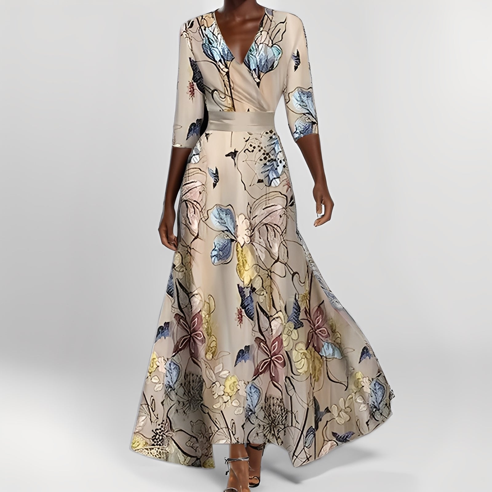 Ein elegantes und bequemes Blumenmuster-Kleid, das mühelos Ihre Alltags- und Abendoutfits aufwertet.