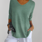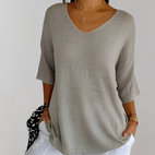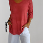 Verleihen Sie Ihrem Alltagsstil mit dem Jessé V-Ausschnitt Strickoberteil neuen Schwung – bequem, schick und vielseitig kombinierbar.