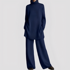 Dieses Lounge-Set vereint ideal Komfort und raffiniertes Design. Der Stehkragen sorgt für Komfort und Wärme, während der elegante Schnitt die Silhouette betont. Hergestellt aus weichen Materialien, ist es perfekt zum Entspannen zu Hause oder für einen lässigen Look. Ein Set, das Komfort und Eleganz mühelos verbindet.