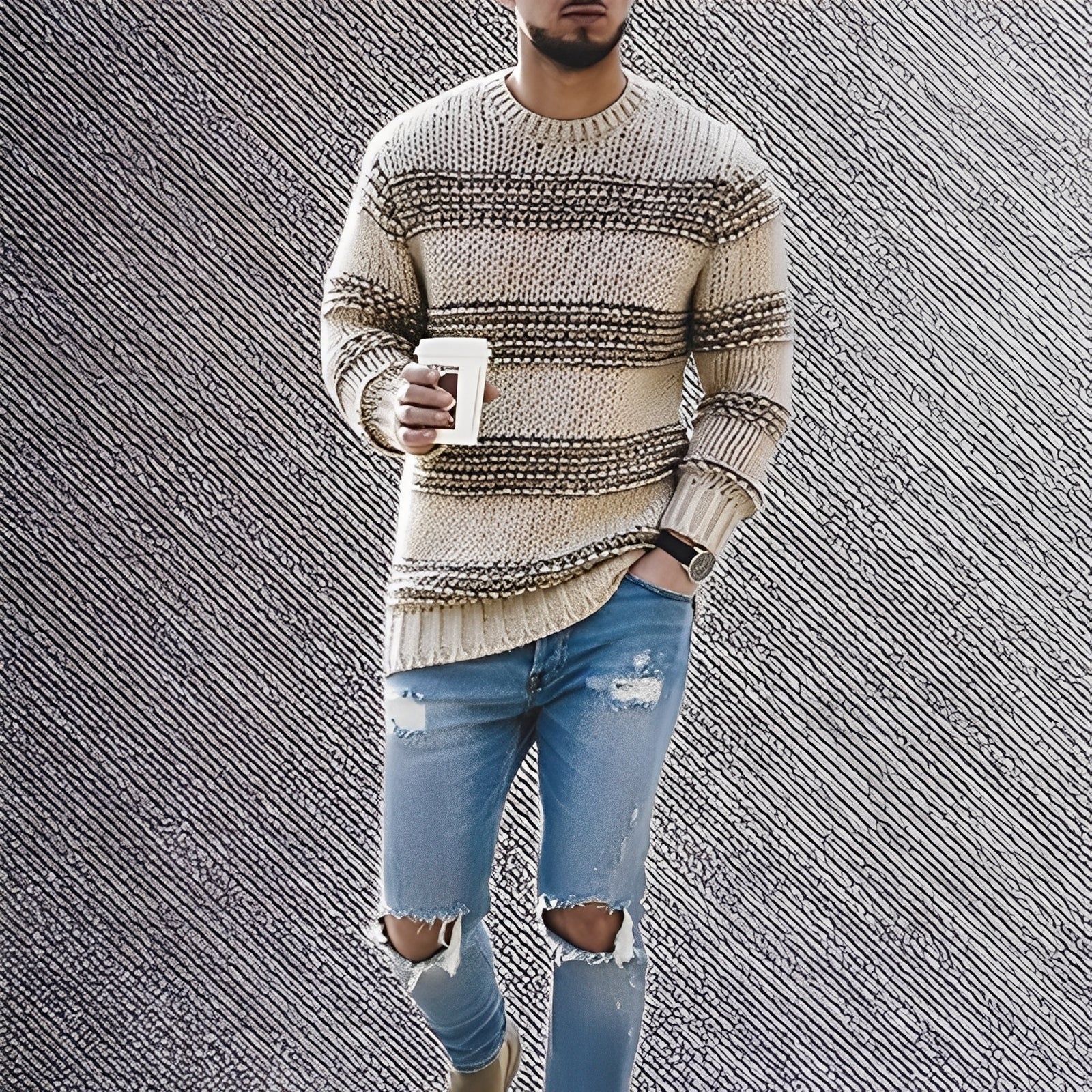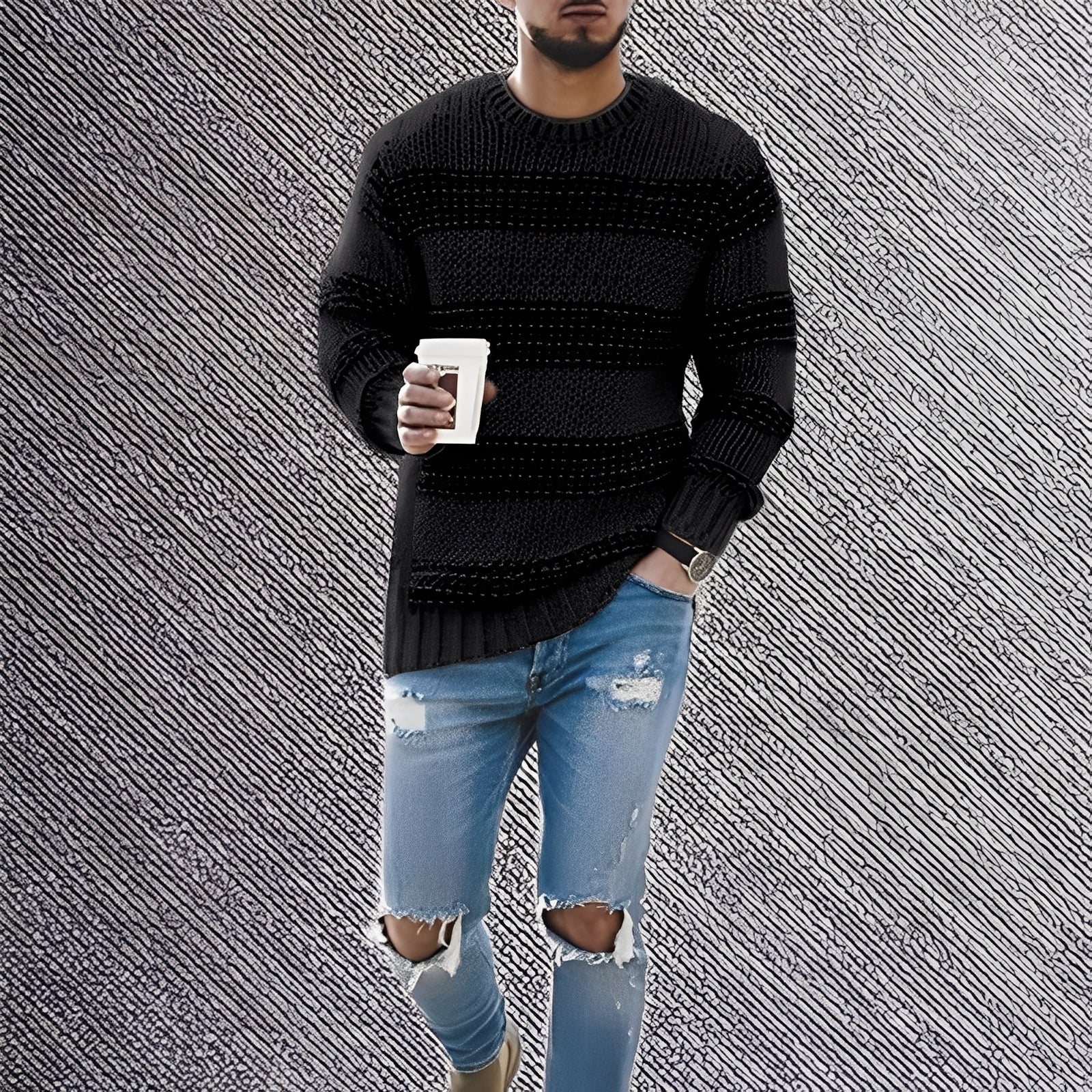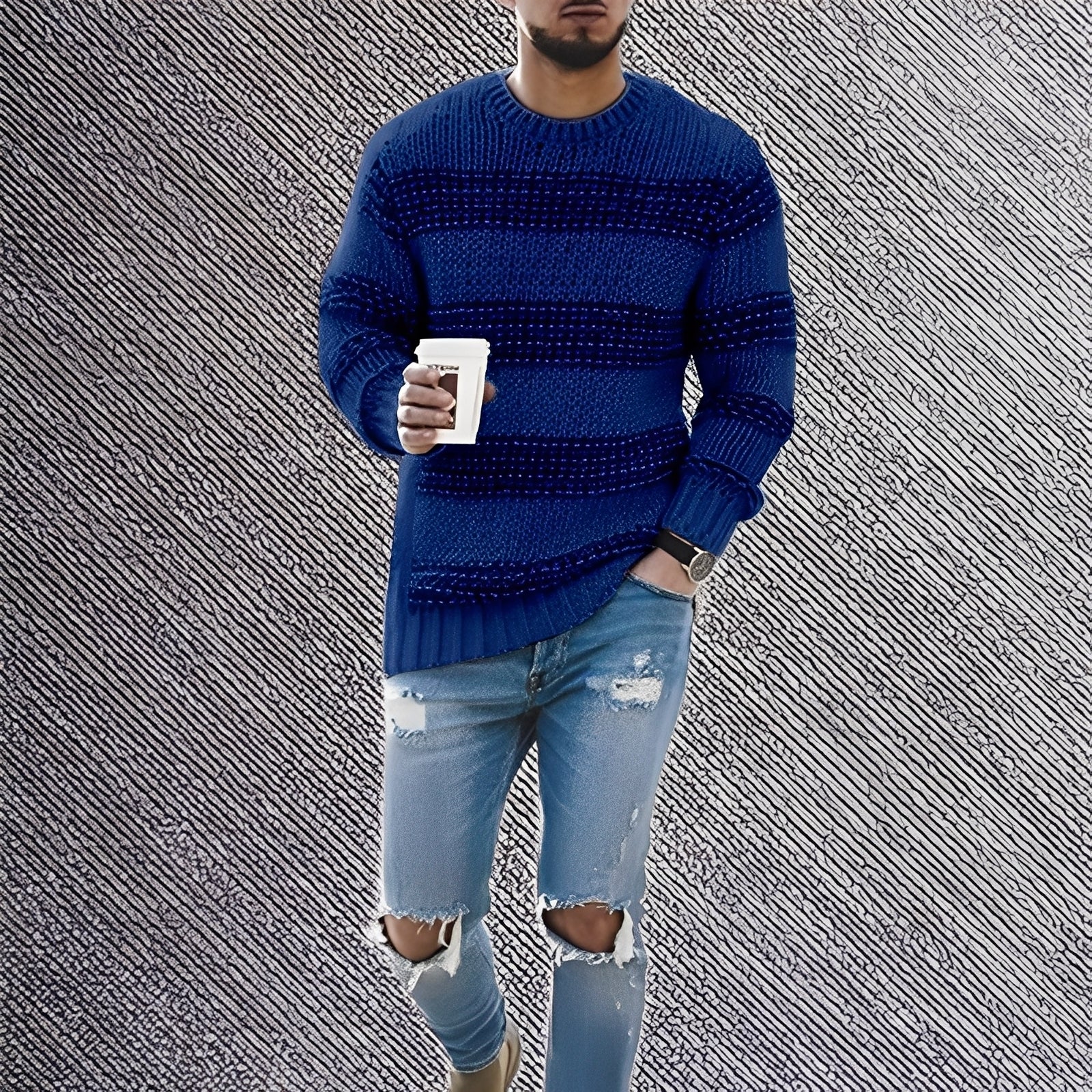 Stevie - Herrenpullover mit geprägtem Muster und elegantem Stil