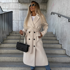 Zeigen Sie mit diesem klassischen Trenchcoat für Damen mit langen Ärmeln selbstbewusst Ihre zeitlose Eleganz.