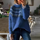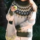 Erweitern Sie Ihre Wintergarderobe — dieser Pullover mit nordischem Muster ist eine unverzichtbare Mischung aus Bequemlichkeit, Stil und jahreszeitlichem Reiz.