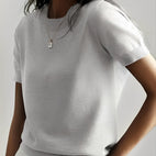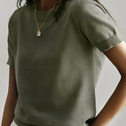 Eine kurzärmelige Bluse, die mühelos Lässigkeit, Komfort und Eleganz vereint.