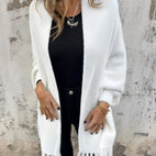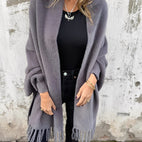 This cardigan combines soft fabric and careful details like a decorative pompom that completes the look. Its loose fit offers great freedom of movement and comfortable wear. Perfect for cool days, whether at home, at work, or on the go. A versatile garment that combines comfort and current style.