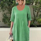 Bridget cotton dresses with pocket are the perfect blend of comfort and subtle grace. Thanks to their pleasant fabric and relaxed cut, they will become your favourite piece for walks, outings, and daily moments of rest.