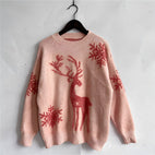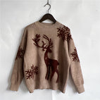 This sweater adds a joyful touch of winter to your wardrobe. The soft fabric ensures a pleasant feel, while the fun reindeer pattern offers a festive vibe. Its loose fit allows great freedom of movement, ideal for comfortable winter days at home or a winter walk. A must-have for women who appreciate fashion and festive outfits.