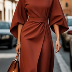 - Feminine and flattering cut – The belt gently emphasizes the waist.