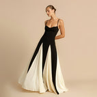 This dress stands out with its chic style featuring striking diagonal stripes. The loose fit ensures a feminine and flattering silhouette. The contrasting elements add a contemporary touch to the style. Comfortable to wear and visually timeless. Perfect for special events or chic appearances.