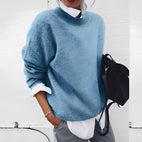 Our Fabien blended wool sweater is a soft and versatile garment that brings a classic and warm touch to your wardrobe. Made from a high-quality wool blend, it provides good thermal insulation without being too thick, making it ideal for cool mornings and evenings when layering. Its loose yet structured cut ensures a flattering shape, making it perfect to pair with jeans or fitted trousers. Elegant and understated, this sweater fits perfectly with casual or smart outfits.