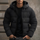 This jacket stands out with its soft velvet and insulating lining that keep you warm even in the cold. The hood offers protection against wind and bad weather, while its current cut ensures a neat and elegant look. Practical pockets complete its functional design. Perfect for men seeking comfort and style.