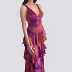 The long “Hazel” dress charms with its light cut and romantic floral pattern.menThe backless design with thin straps offers a style that is both chic and modern. The fluid fabric falls delicately and highlights the silhouette. Perfect for spring days, summer evenings, or other special occasions. A dress that combines lightness and elegance.