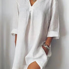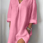 Discover the Iona dresses – your new summer favorite. These lightweight linen dresses with V-neckline and mid-length sleeves combine comfort and elegance. Whether you're going to the city, the beach, or an outdoor dinner, Iona guarantees you style and comfort.