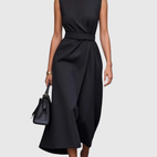 - Subtle pleats at the waist – Slim the silhouette while maintaining a fluid drape