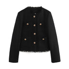 This short tweed jacket for women, Muriel with buttons, combines timeless grace and relaxed refinement. Designed to offer a fitted and flattering cut, it pairs perfectly with trousers, a skirt, or jeans, for work or weekend outings. The classic button closure adds a refined touch, while the textured tweed fabric brings depth and style to all your outfits. Light yet structured, it ensures optimal comfort while maintaining a chic silhouette. A versatile garment essential for women seeking style, comfort, and self-assurance.