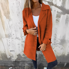 Enhance your wardrobe with the casual long Odile coat for women, featuring stylish turned-up cuffs. This coat blends a relaxed look with modern refinement, perfect for workdays and weekend outings. Made from high-quality polyester, it provides warmth, sturdiness, and a polished appearance without sacrificing comfort. Available in several colors, including green, pink, black, gray, purple, brown, blue, red, and khaki, it pairs easily with all your outfits. Its timeless design lets you stay graceful throughout the season while enjoying a practical garment for everyday wear.