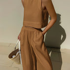 The two-piece “Patricia” set combines casual comfort with modern, elegant style. The matching pieces harmoniously create an effortless uniform look. The loose fit allows great freedom of movement and a pleasant feel throughout the day. Perfect for everyday wear, relaxing activities, or casual outings. A set that perfectly combines comfort and elegance.