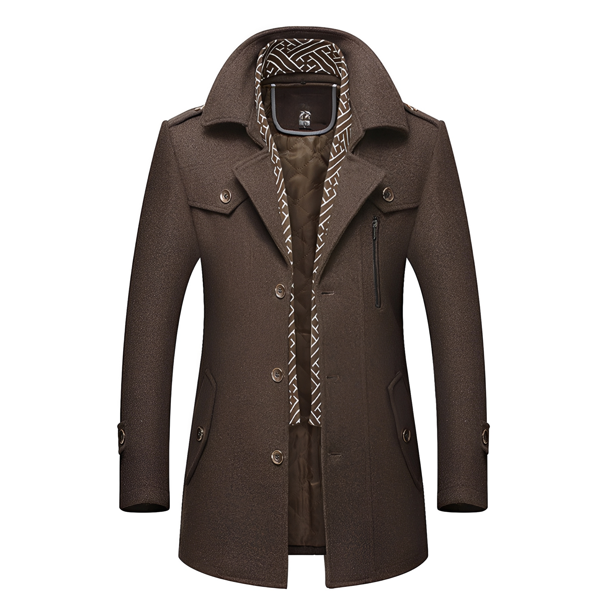 This retro coat captivates with its sturdy fabric and well-placed pockets, both useful and modern. The traditional cut ensures a timeless look, while the warm lining provides good protection when it's chilly. Ideal for men who want to combine elegance and practicality. A versatile garment for everyday wear and special occasions.