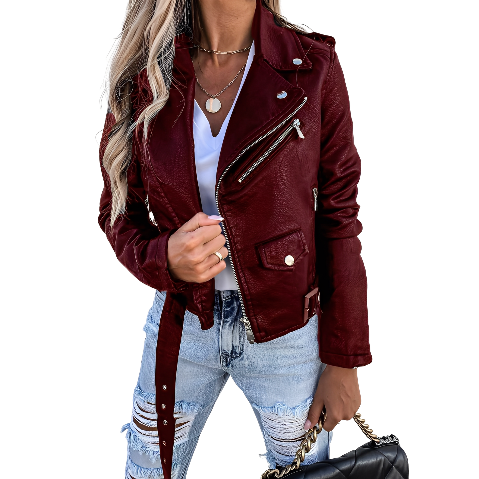 Tiana - Vintage biker-style leather jacket with zipper for women
