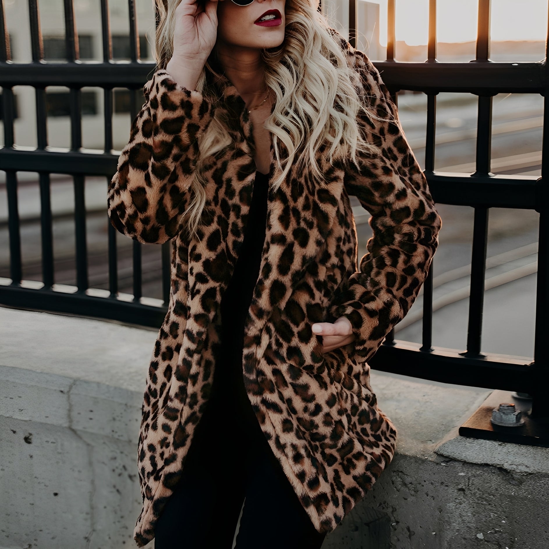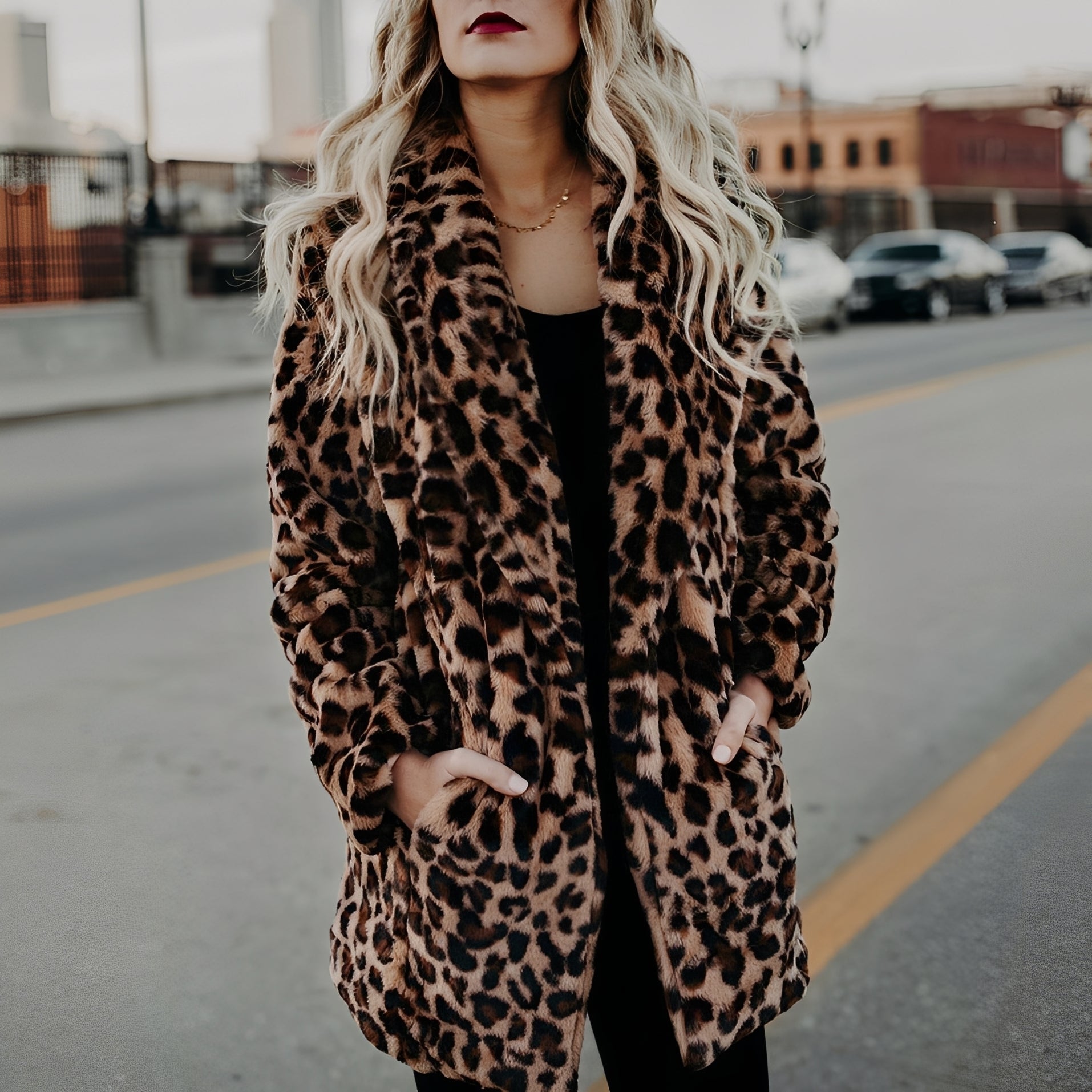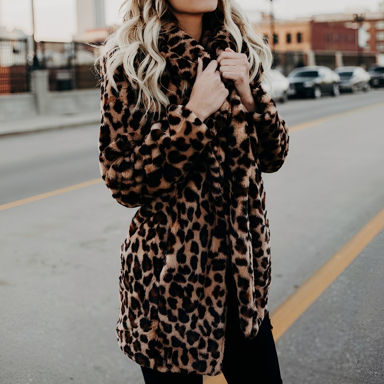 Ce manteau en fausse fourrure charme par son motif léopard captivant et son tissu doux et chaud. Sa coupe féminine et son col à revers élégant apportent de l'élégance tout en restant confortable et cosy. Parfait pour les journées froides, les loisirs ou les looks streetwear élégants. Un véritable atout pour les amateurs de mode fonctionnelle et accrocheuse.