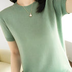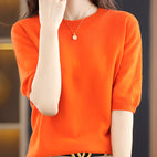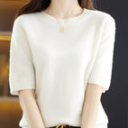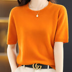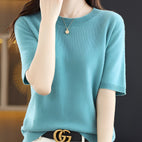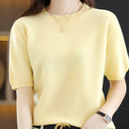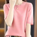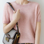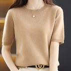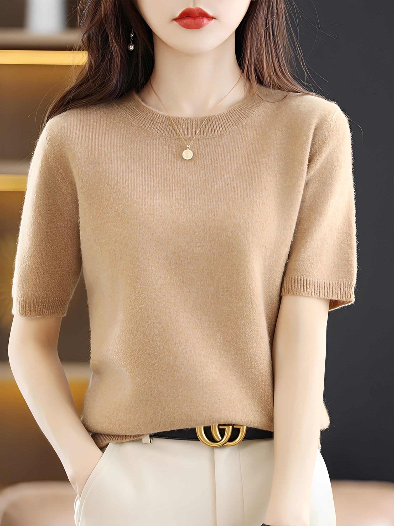 Rehaussez votre garde-robe de tricots avec le pull à manches courtes en laine et cachemire « Blandine », où le luxe rencontre le confort quotidien.