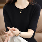 - Silhouette classique et polyvalente — son encolure ronde et sa coupe épurée le rendent facile à assortir pour le travail ou les sorties décontractées.