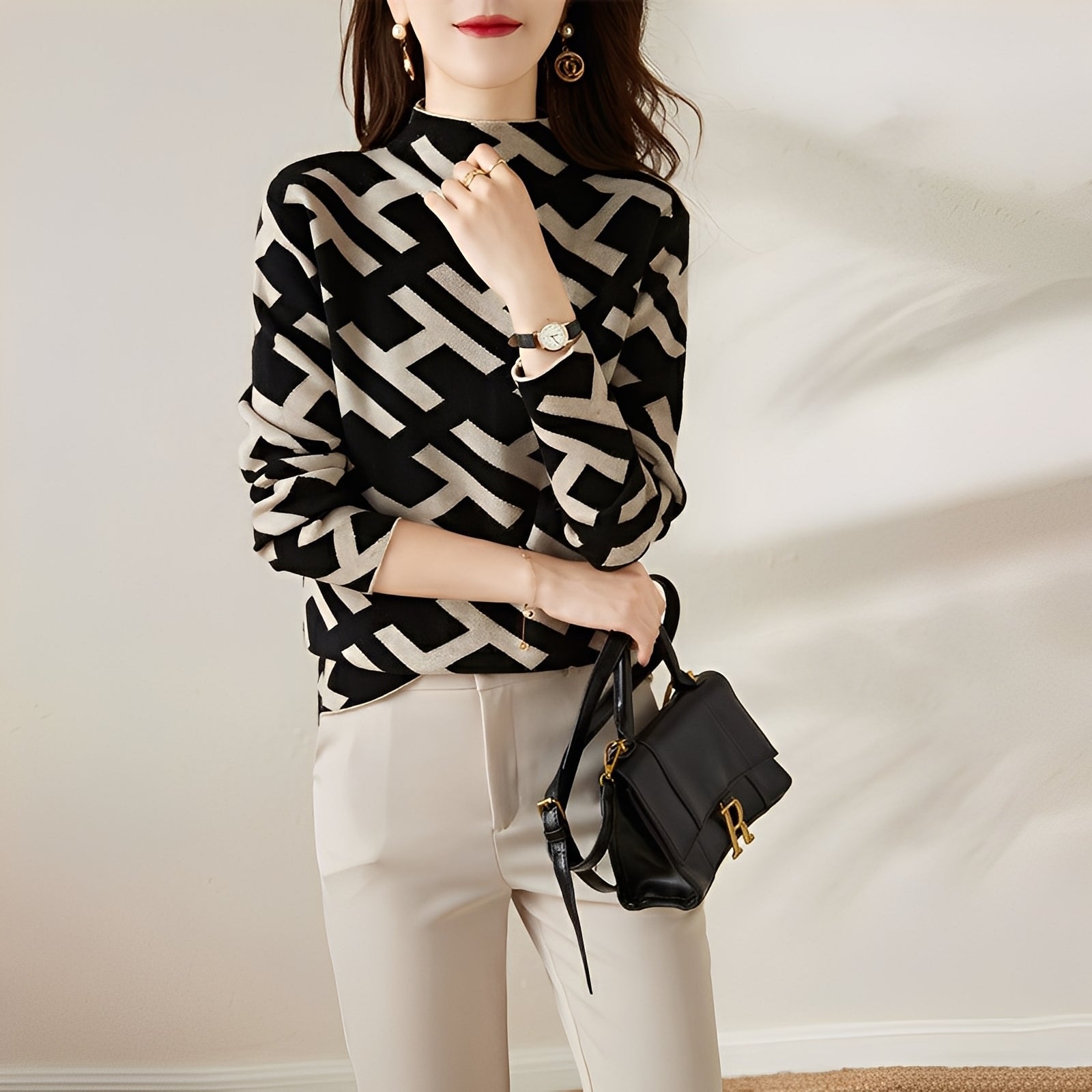 Eleanor - T-shirt à manches longues tricoté avec motif pour femmes