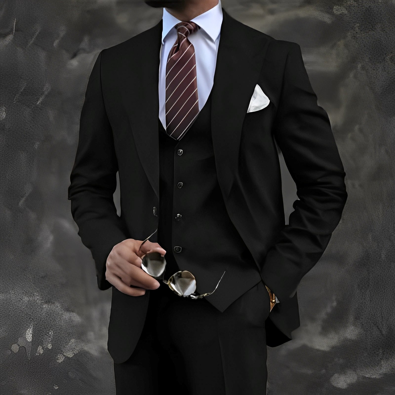 Le costume Elwyn combine un style chic avec un confort exceptionnel. Fabriqué avec des tissus légers, il est parfait pour être porté agréablement pendant de longues périodes, lors d'événements festifs ou de réunions d'affaires élégantes. Le col traditionnel et le costume en trois pièces comprenant veste, gilet et pantalon offrent une apparence classique et sérieuse. Essentiel pour les hommes amateurs d'élégance et de confort.