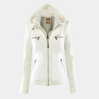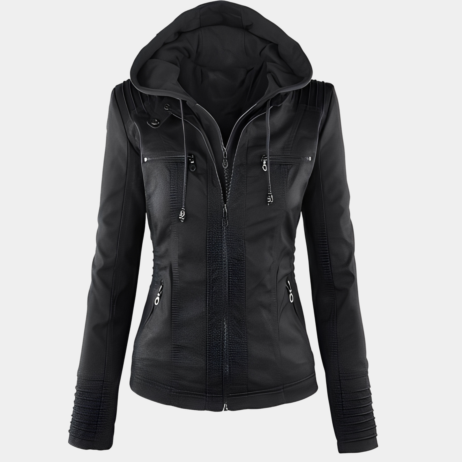 Jaylene - Veste imperméable et chic en cuir avec capuche pour femmes