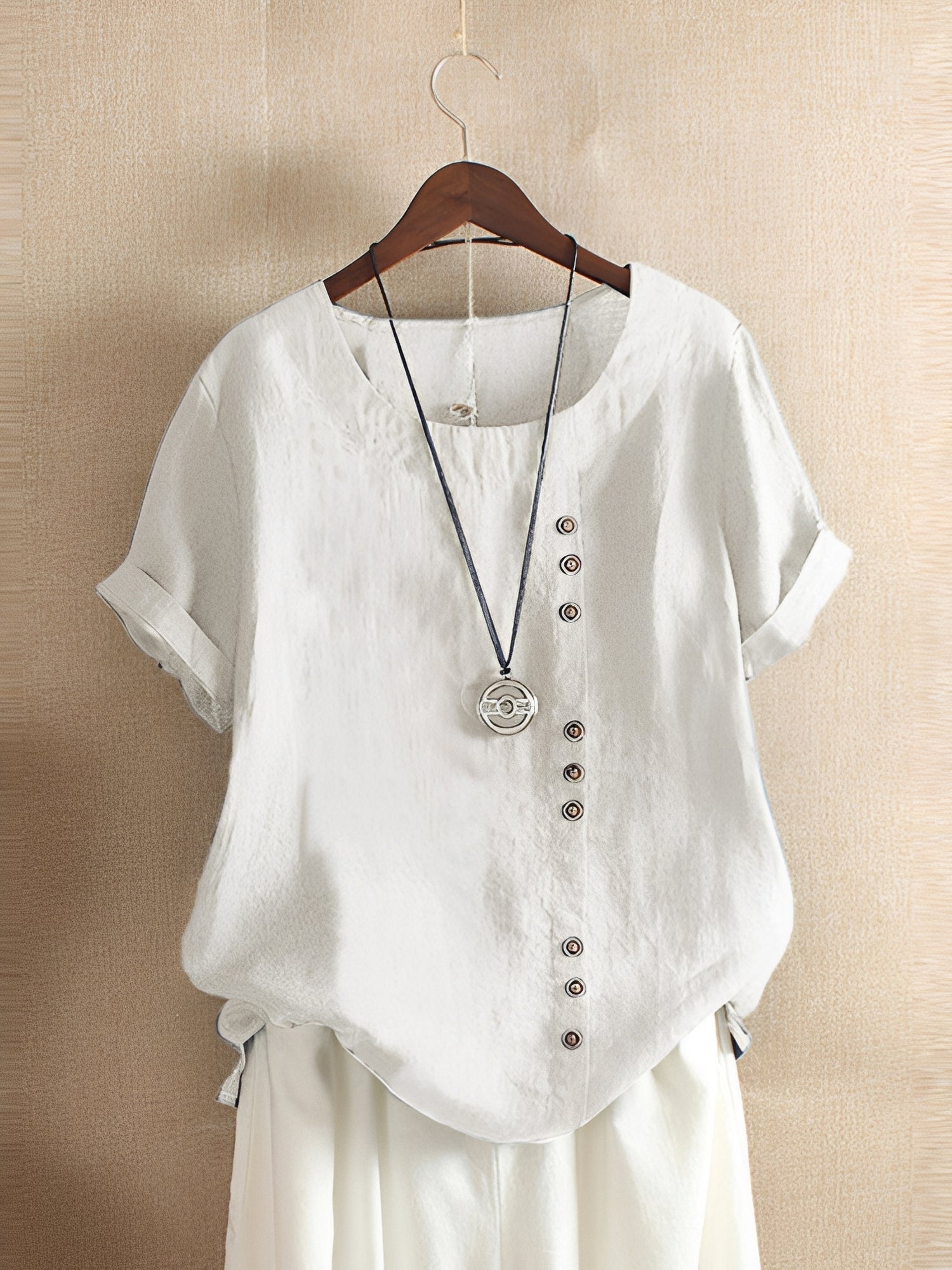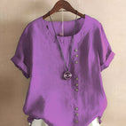 Cette blouse manches courtes pour femmes charme avec sa coupe relax et son tissu agréable doux pour la peau. Sa coupe large garantit une aisance de mouvement et un confort optimal. Parfaite pour le quotidien, les loisirs ou les événements estivaux. Polyvalente, elle s'harmonise facilement avec des jeans, des jupes ou des shorts pour un style décontracté.