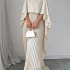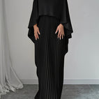 La robe Katherine séduit avec son col montant, ses manches évasées et sa jupe volumineuse plissée. Sa forme large assure un confort exceptionnel, tout en suivant élégamment chaque mouvement. Parfaite pour des soirées, des repas ou des événements nécessitant une tenue élégante.