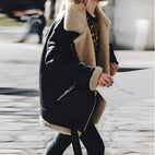 Jeffrey - Blouson moderne en cuir avec doublure en sherpa chaude pour hommes