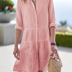 Lindy - Robe à rayures décontractée avec col à revers pour femmes