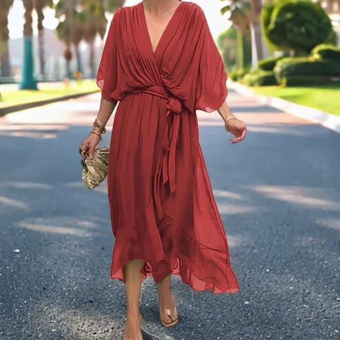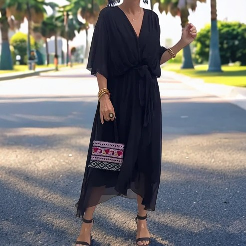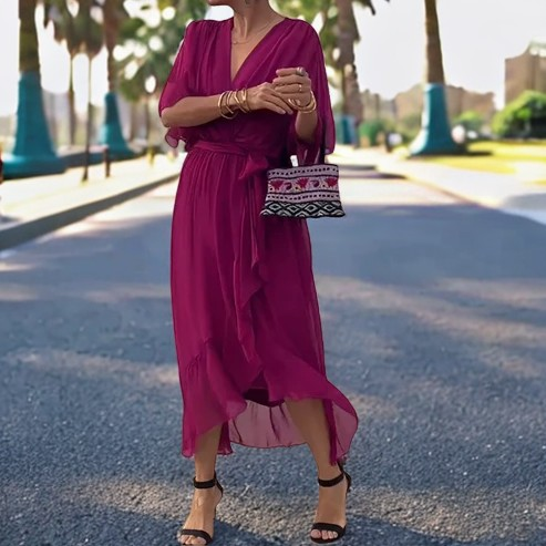 Affirmez votre style avec cette élégante robe d'été à col en V pour femme de Loissa, conçue pour allier confort et sophistication. Confectionnée dans un tissu léger et respirant, elle vous garde au frais tout en vous offrant une coupe flatteuse et féminine. Idéale pour les fêtes estivales, les sorties décontractées ou les événements en soirée, cette robe allie style et praticité sans effort. Son design intemporel vous permet de l'habiller ou de la déshabiller facilement pour toutes les occasions. Profitez d'une pièce polyvalente qui enrichit votre garde-robe et vous donne un look chic sans effort.