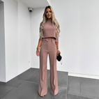Rehaussez votre garde-robe avec notre ensemble moderne assorti composé d'un haut et d'un pantalon, où le style contemporain rencontre le confort quotidien.