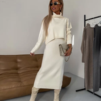 Ensemble de robe en tricot à deux pièces avec col haut et coupe allongée