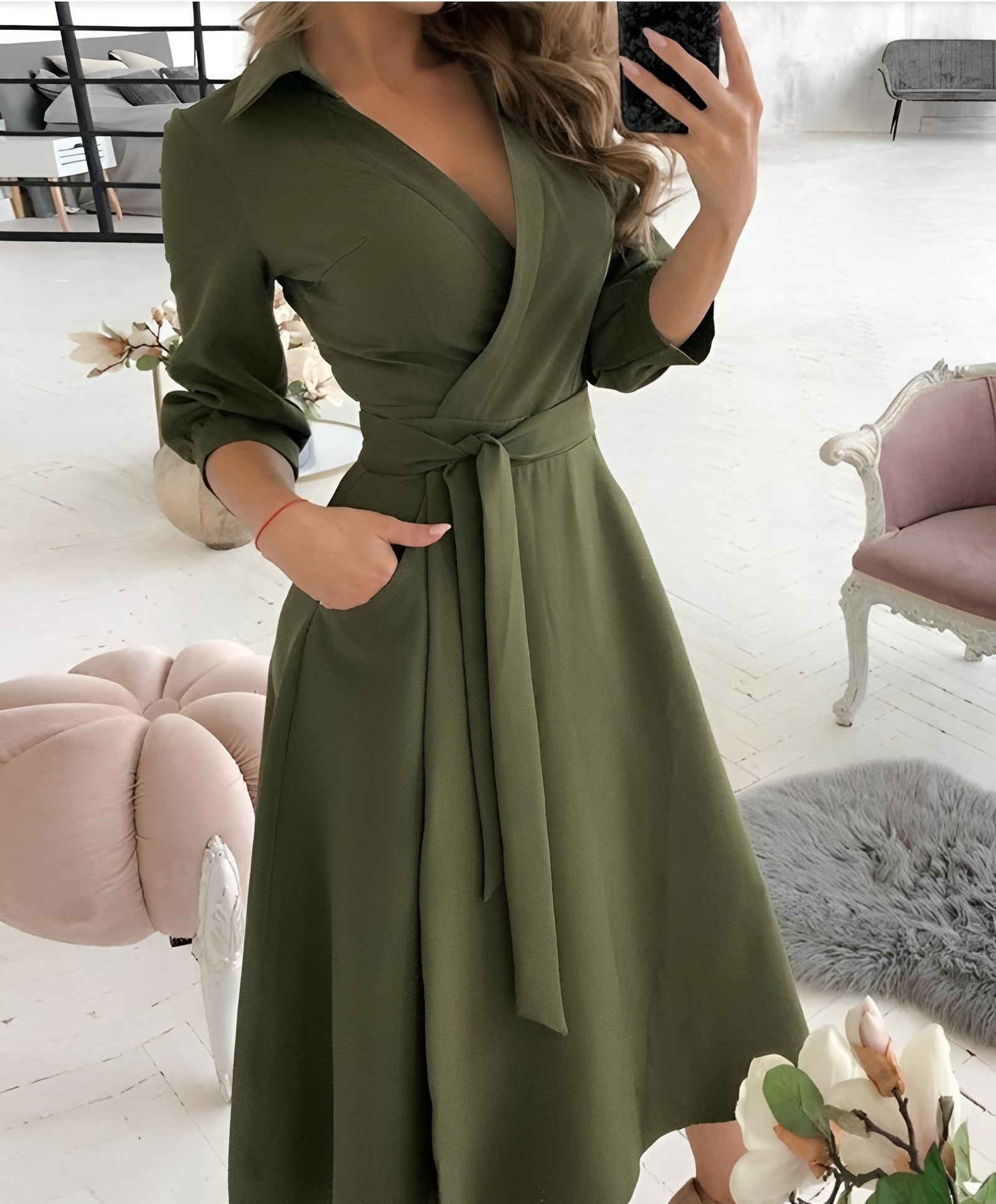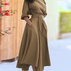 Cette robe chic pour femmes séduit par une ceinture coordonnée qui met en valeur la taille. Le tissu agréable assure un confort tout au long de la journée. La coupe est à la fois moderne et classique. Parfaite pour le quotidien, le bureau ou les occasions spéciales.
