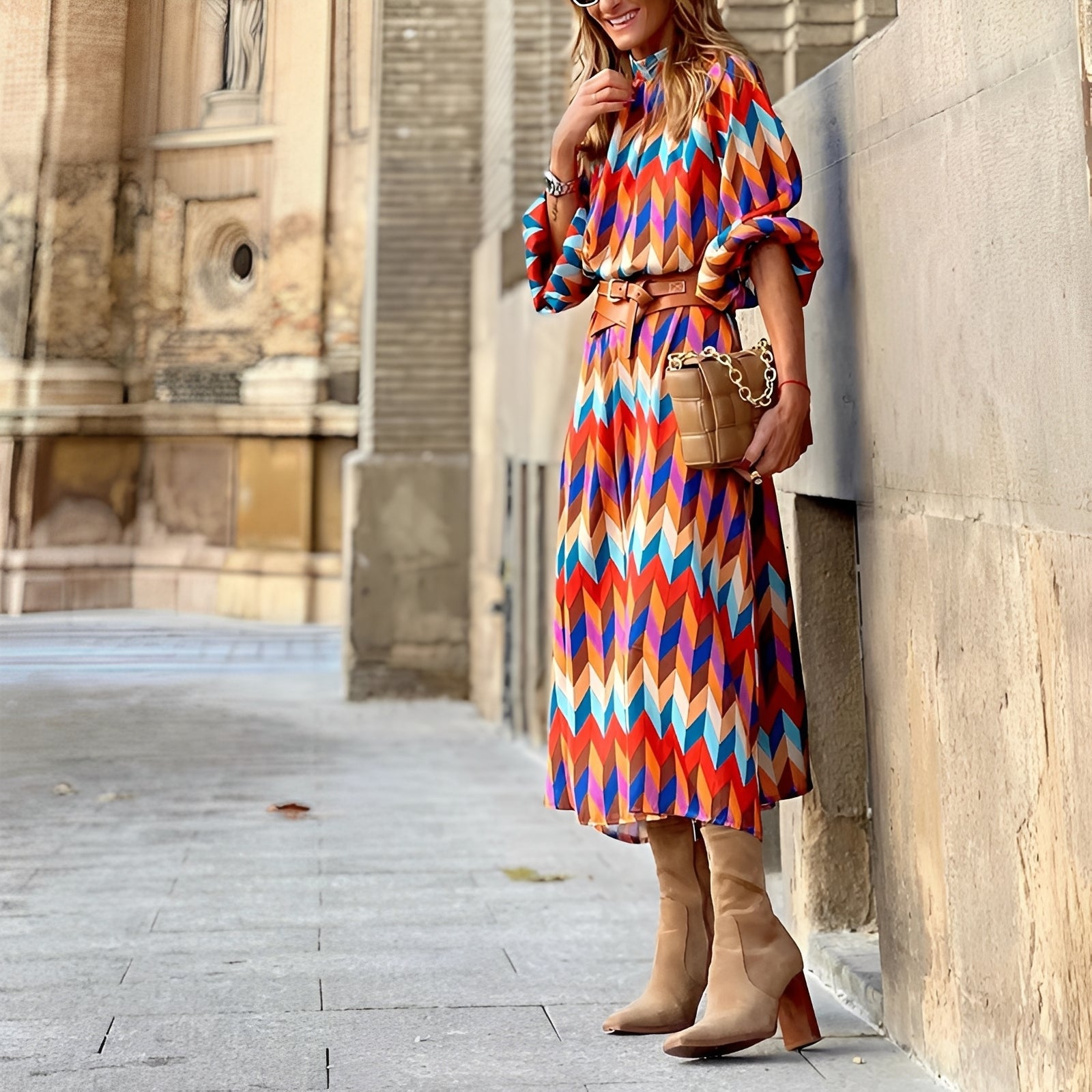 Voici pourquoi « Sandra - Robe mi-longue colorée pour femmes » est un must-have dans votre garde-robe :